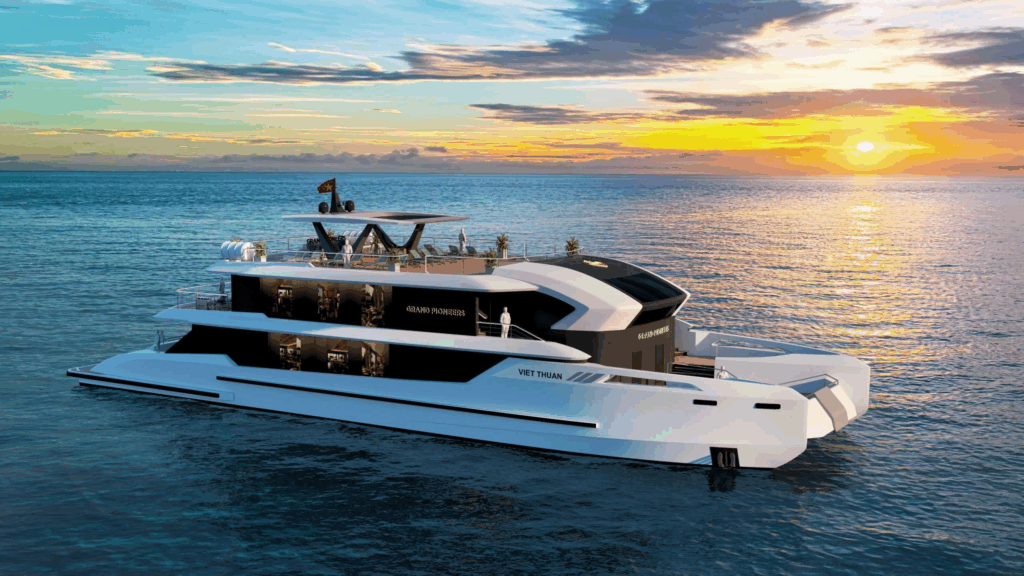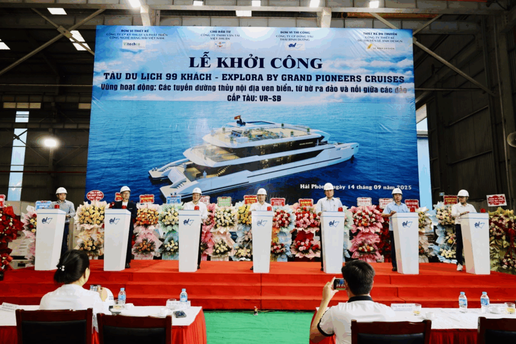 Hạ Long, ngày 14/9/2025, Công ty TNHH Vận tải Việt Thuận – chủ sở hữu cặp đôi siêu du thuyền xanh Grand Pioneers – chính thức khởi công đóng mới tàu tham quan trong ngày sức chứa 99 khách, với hệ số an toàn cao gấp 4 lần tiêu chuẩn hàng hải hiện hành.
